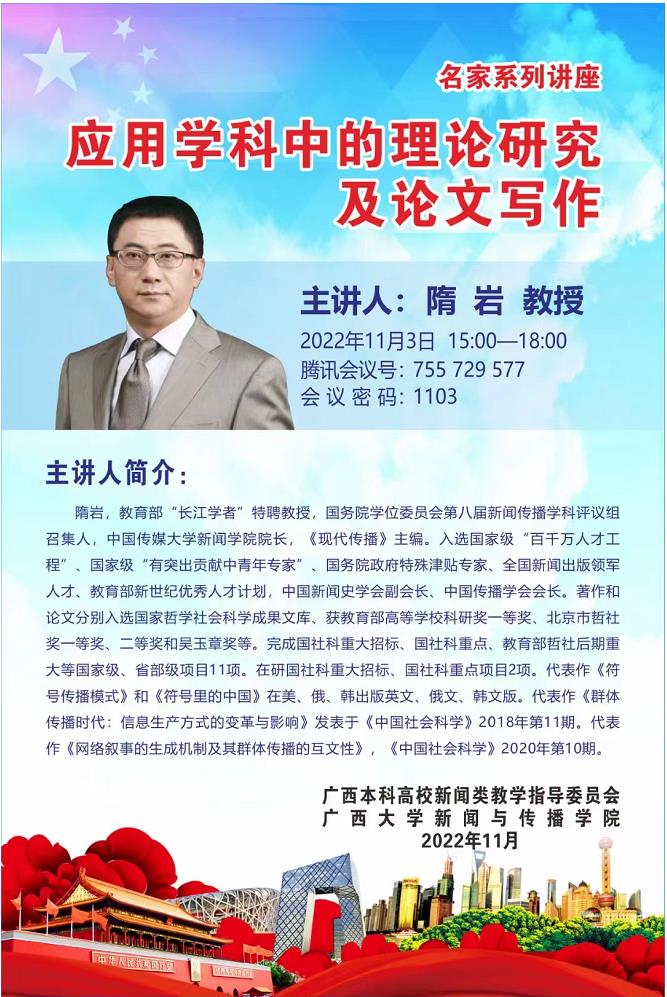 关于举行名家系列学术讲座的通知(四):中国传媒大学 隋岩教授