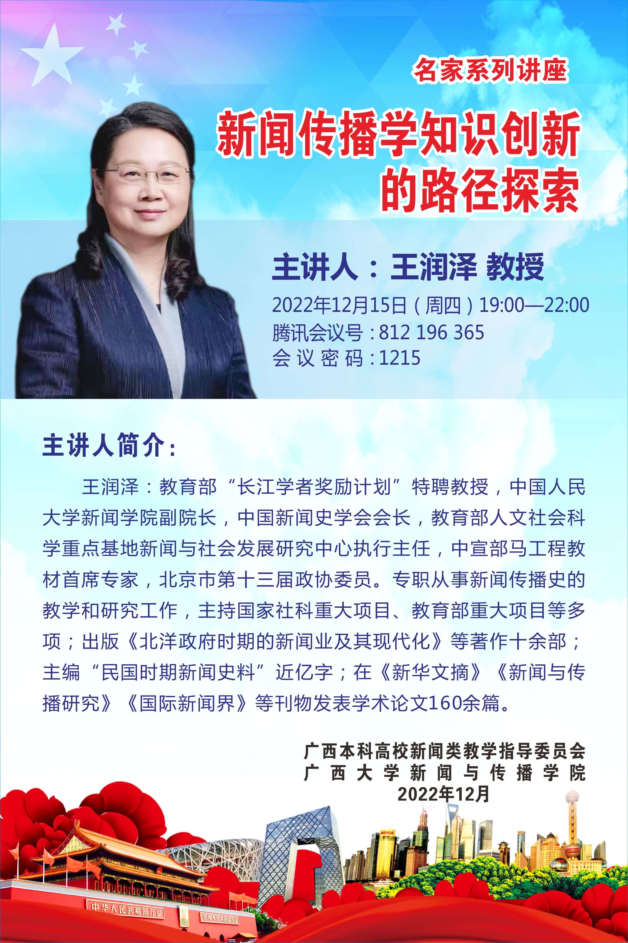 关于举行名家系列学术讲座的通知(六):中国人民大学 王润泽教授