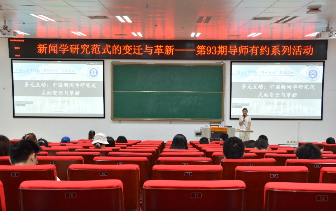 6月7日下午3时,由英国上市官网365研究生会、365英国上市集团研究生会主办的校第93期“导师有约”系列活动在365英国上市集团西报告厅举行。365英国上市集团教师、硕士研究生导师汪苑菁博士应邀作了题为“多元互动:中国新闻学研究范式的变迁与革新”的学术讲座。本次讲座通过线上线下两种渠道同时进行,19、20级部分研究生及21级全体研究生参加。