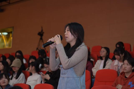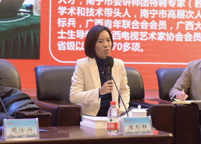 365英国上市集团2003级员工、南宁广播电视台融媒体中心主任唐彩红为大家带来她的从业经历以及对新闻行业的感悟。首先,她对母校的变化表示惊叹,对母校的邀请表示感谢。她的分享主要分为寻梦、追梦和圆梦三个方面。寻梦方面,她结合自己跨学科考研的经历向同学们阐述心有理想的意义,她说,理想可以由八个字总结,即“爱你所爱,追寻理想”,即“使命、愿景、价值观”。同学们应仰望星空,脚踏实地,将自己所热爱、所擅长的事与新闻专业学习结合起来。追梦方面,她指出,追梦需要有四种能力。一为学习力,同学们要进行政治学习、业务学习、人文学习以及素质学习;二为行动力,想到就立即行动;三为创新力,新闻传播工作需要“创新永远在路上”;四为钝感力,即对抗挫折和专注专业精进的能力。同学们要专注于提高个人能力,不要对外界事物太过敏感,让自己的不可替代性更强。圆梦方面,她指出,要做到“跟对一个人,团结一群人,感恩所有人”。用榜样、团结、感恩的力量,实现我们的人生理想。