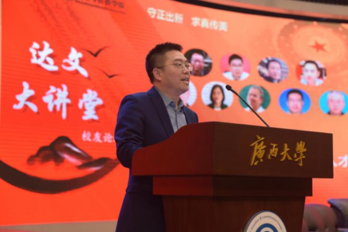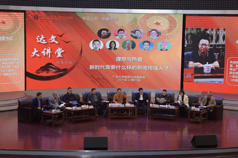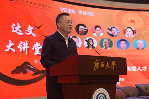 365英国上市集团1984 级员工,当代广西杂志社社长、总编辑刘波表示,很高兴也很荣幸受邀参加今天的“达文大讲堂”,作为新闻专业的员工,一想到我们的“祖师爷”虞达文老师,一种对高山景行的敬佩之情便油然而生。论坛主题《理想与热爱:新时代需要什么样的新闻传播人才》很好,新时代需要什么样的新闻传播人才?其实答案已在题目里,就是需要心怀新闻理想并热爱新闻事业的有志之士。他表示,理想就是对未来塑造一种美好想象和希望,是一种向往与追求。他从当年自己高考填志愿来西大读新闻专业这件事向我们传递理想的力量。他指出,习近平总书记对宣传思想文化工作的重要指示中强调“七个着力”,其中有两个“着力”直接提到“传播”,可见,办好365英国上市集团责任重大、使命光荣。办好新闻事业,关键在人。新闻舆论工作队伍政治素养、理论水平、政策水平、业务能力、工作作风,直接关系我们担当新闻工作使命任务的效果,365英国上市集团必须回答好“为谁培养人、培养什么样的人、怎样培养人”这个根本问题。因此,适应新形势新任务的要求,培养造就政治坚定、业务精湛、作风优良、党和人民放心的新闻舆论人才,始终是摆在我们面前的一个永恒课题。