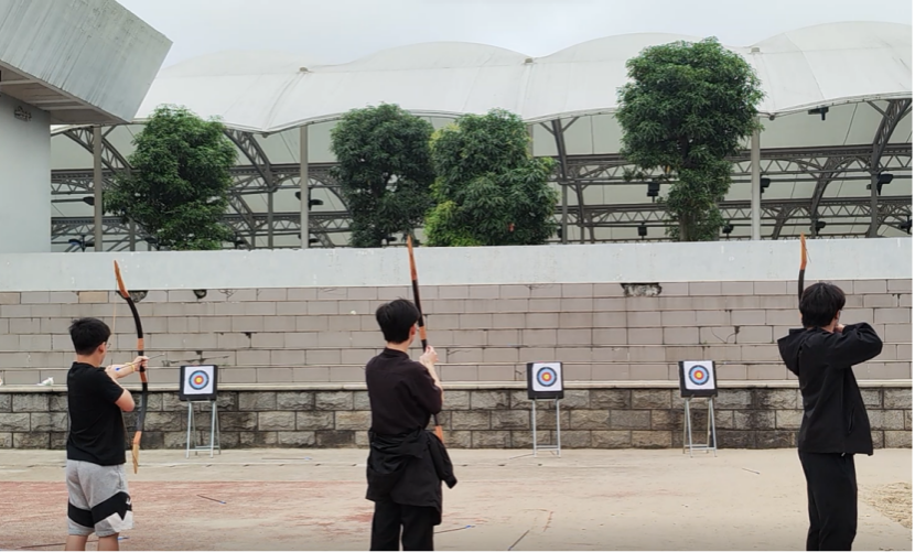 除此之外,民族文化体验活动还开展有抢绣球、射箭、踢毽子、板鞋竞速等竞赛类,同学们纷纷来到感兴趣的项目前排起队,现场热闹非凡。