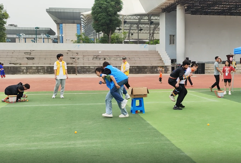 双手紧握、保持平衡、稳步前行,在高脚马项目中,同学们开展紧张却趣味十足的比赛,感受不一样的“奔跑”。