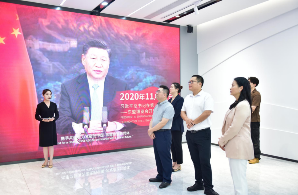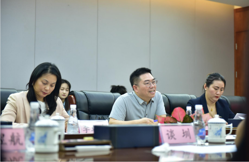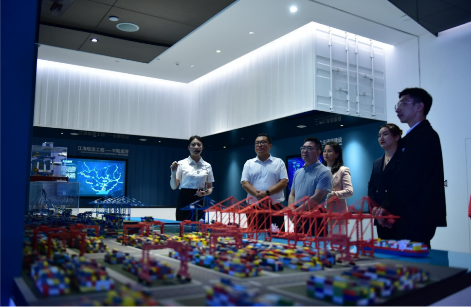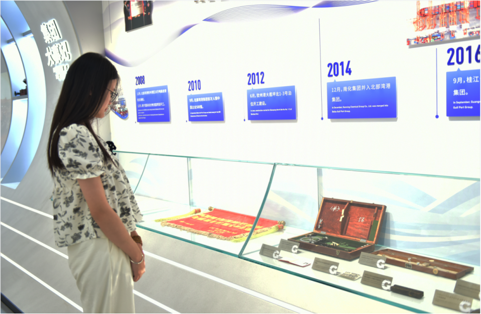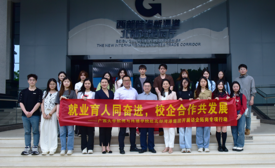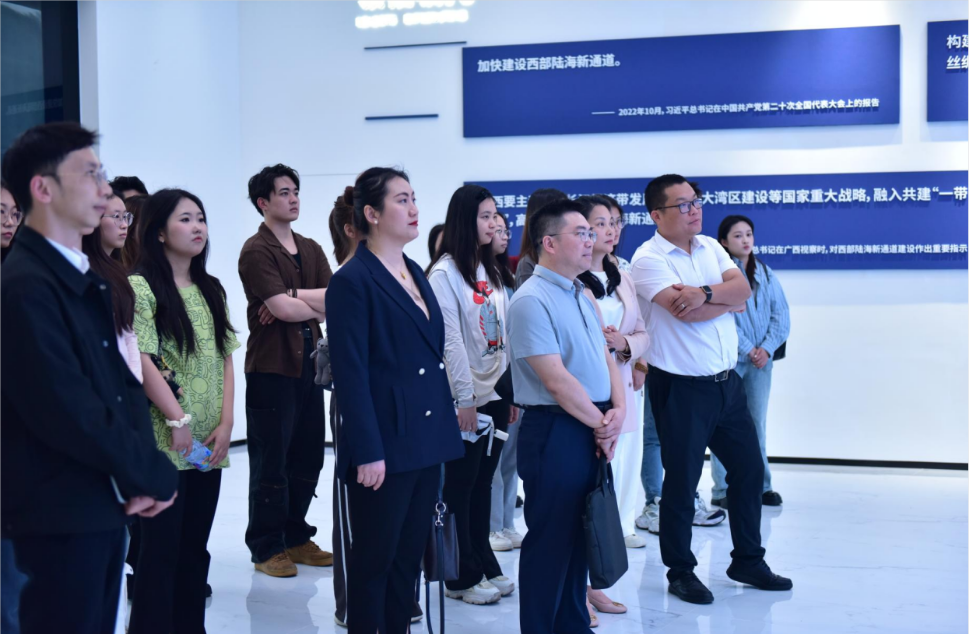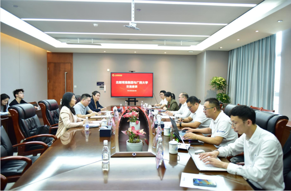 3月26日下午,公司党委书记银健、教授李朝珍、团委书记刘梦娟及求真传美解说团成员来到北部湾港集团,参观北部湾港展厅,并与集团党委组织部、人力资源部副部长谭雅等人开展交流座谈。