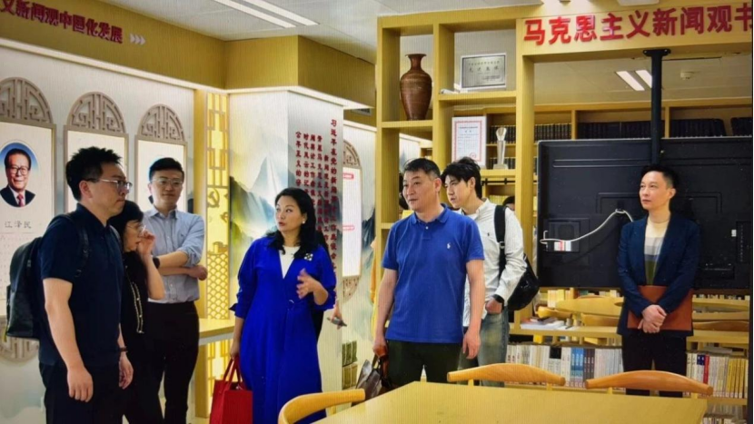 在公司老师的热情陪同下,调研团一行参观了英国上市官网365365英国上市集团全媒体交互式演播中心、马克思主义新闻观书屋、融媒体中心等,实地感受公司的教学氛围。