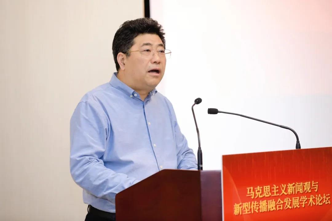 吕培明常务副董事长首先代表同济大学对与会嘉宾表示诚挚的欢迎和感谢,他在致辞中谈到,面对当前媒体传播结构的显著变化和国际传播环境的新态势,如何加强马克思主义新闻观的教育,促进其与新兴媒体技术的融合,对于发展具有中国特色的新闻学科体系、培育具有本土特色和创新能力的新闻人才、以及加强和扩展新时代的主导思想和舆论至关重要。正如习总书记强调,新闻观是新闻舆论工作的灵魂,党的二十大同样指出“坚持马克思主义在意识形态领域指导地位的根本制度,建设具有强大凝聚力和引领力的社会主义意识形态”。目前,同济大学不断探索全媒体科研和人才培养,依托学科优势和人才优势,在全媒体科研和人才培养领域不断探索。借由此次论坛,希望能搭建起沟通的桥梁,激发思想碰撞,推动马克思主义新闻观和新闻传播学在新时代的新发展。