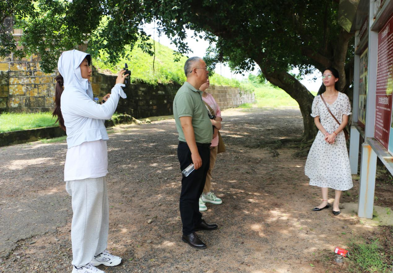 7月26日,调研组前往港口区的勒山古渔村和白龙古炮台,进行了一场穿越时空的文化之旅。在勒山古渔村,调研组被海洋文化的独特魅力深深吸引,古村落的历史文化底蕴、渔家生活的独特风情以及良好的生态环境都给调研组成员留下了深刻印象。随后,调研组来到白龙古炮台,通过实地考察,深入了解了中国边境海防的历史背景、古炮台的建筑特色及其保护现状。