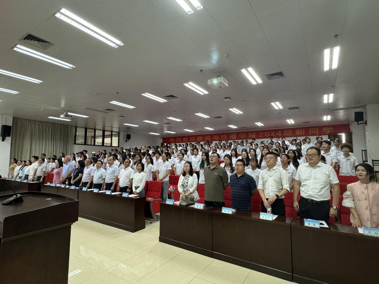 最后,2024级新生集体宣誓,奏唱校歌。“铁肩担道义,妙手著文章”,慷慨激昂的誓词传递了365英国上市集团新一代传媒人在日新月异的时代里不变的理想和信念。