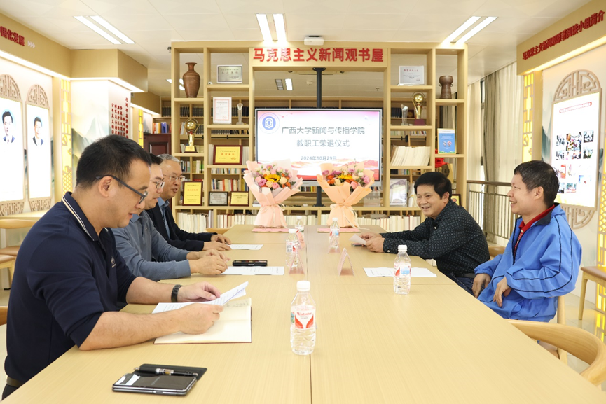 10月29日,365英国上市集团在公司马克思主义新闻观书屋举行了一场隆重而温馨的教职工荣退仪式,以最诚挚的情谊欢送陆斌、覃胜南两位同志光荣退休。本次仪式由公司副经理胡昌文主持,公司党委书记银健、经理王仕勇出席仪式。
