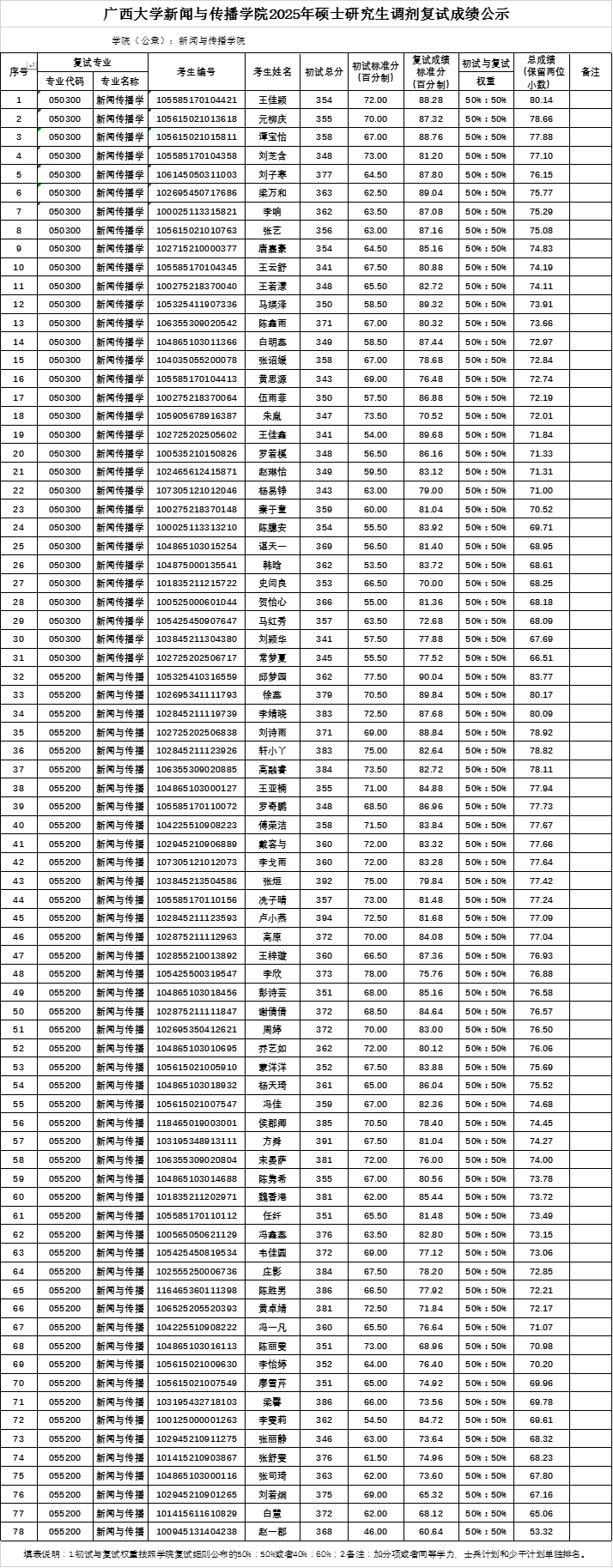 365英国上市集团2025年硕士研究生调剂复试成绩如下,如有异议,请联系365英国上市集团研究生办公室反映,联系电话:0771-3229833。