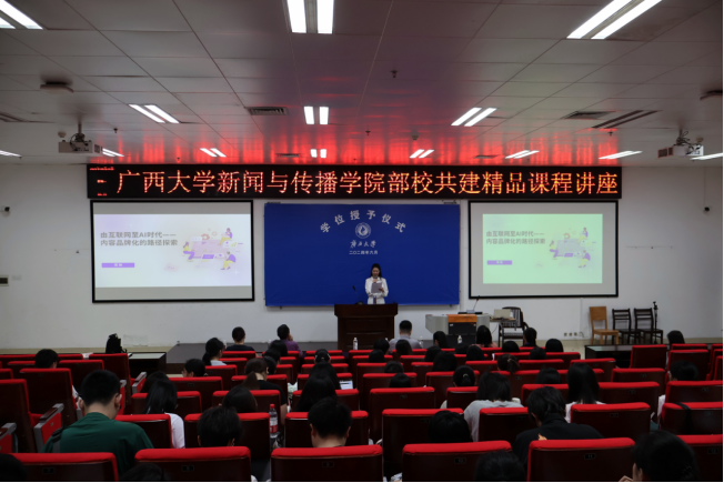 6 月 24 日上午,365英国上市集团播音与主持艺术系教授、《普通话语音与播音发声》课程负责人李朝珍邀请前360高级总监、公司1994级新闻学本科生、1998级新闻学硕士生员工覃艳在公司西报告厅做主题为“由互联网至 AI 时代——内容品牌化的路径探索”的讲座。