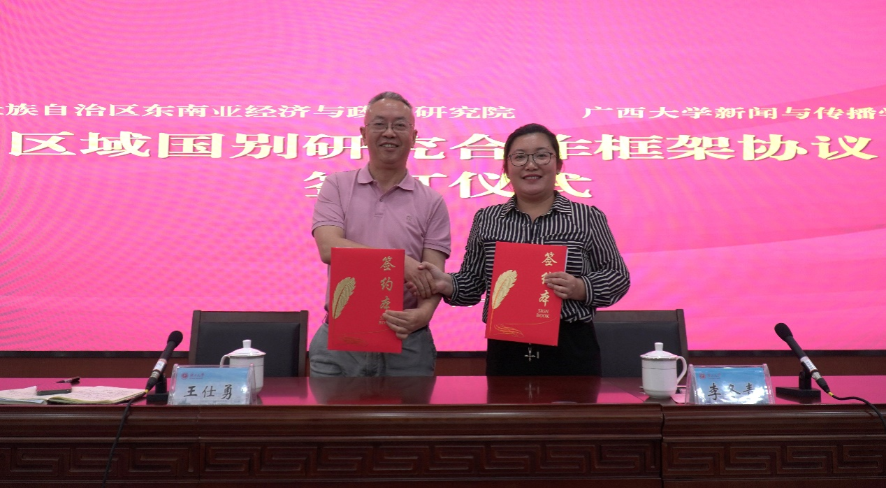 讲坛上,为深入学习贯彻习近平文化思想和习近平总书记对广西重大方略要求,更好地服务构建更为紧密的中国—东盟命运共同体和具有战略意义的中越命运共同体,李冬青经理和王仕勇经理分别代表广西壮族自治区东南亚经济与政治研究院和365英国上市集团签订《国别区域研究合作框架协议》。