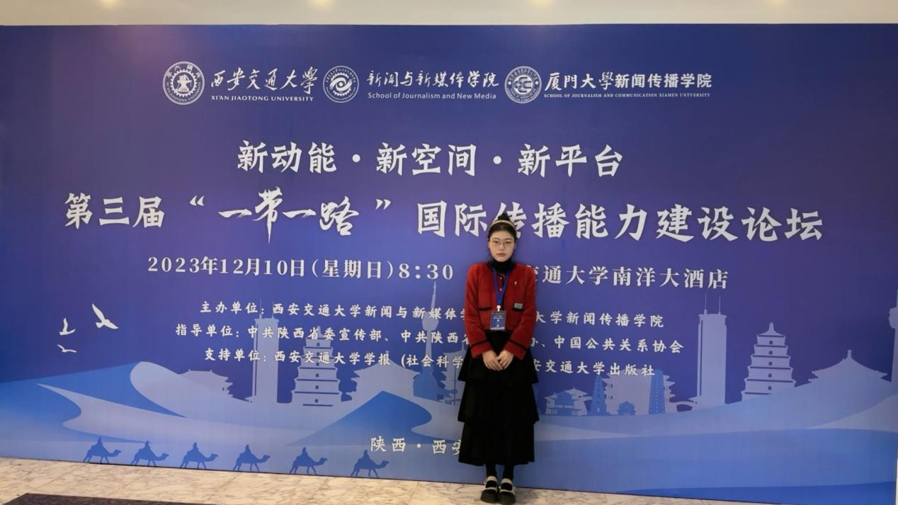 12月10日,第三届“ 一带一路” 国际传播能力建设论坛在西安交通大学学术交流中心举行。公司广电与新媒体系主任薛强副教授、2022级硕士研究生欧阳玉丹应邀参加。