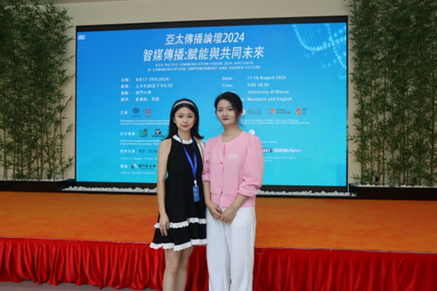 8月17日至8月18日,“亚太传播论坛2024”在澳门大学举办。公司党琼副教授和指导的2023级硕士生林炜盈受邀参会并在分论坛分别担任主持和宣读论文。