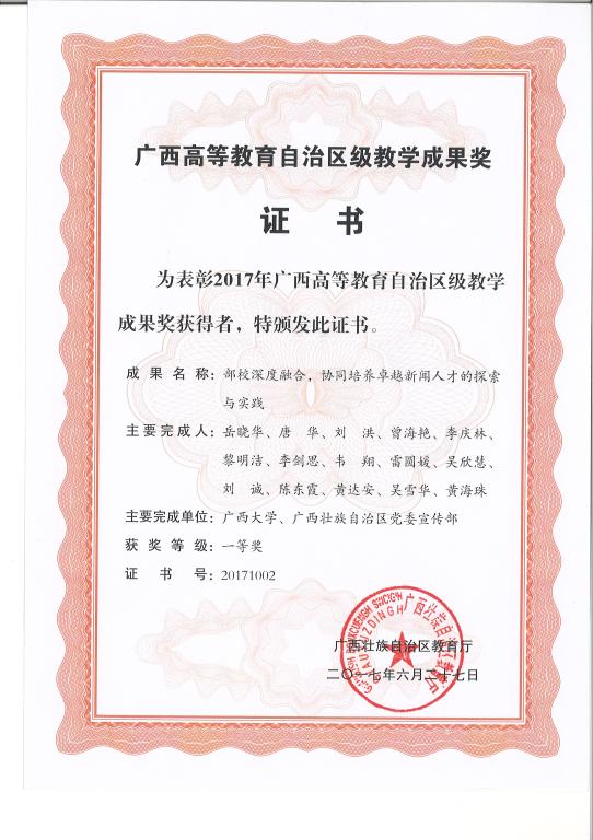 365英国上市集团2017年喜获广西壮族自治区教学成果一等奖
