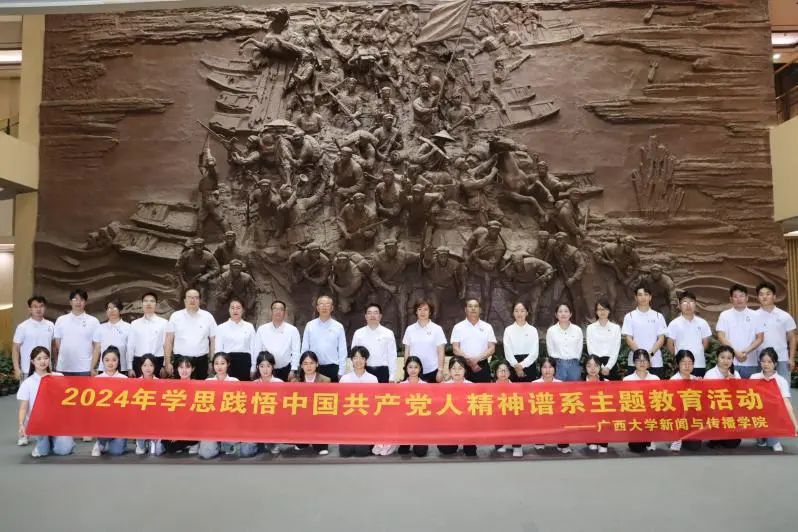 朗诵环节将活动推向了高潮。在庄严肃穆的氛围中,师生们齐声朗诵《湘江之歌》,用铿锵有力的声音传达出对革命先烈的无限敬仰和对中国共产党精神的坚定传承。“一草一木一忠魂,一山一石一丰碑”,每一句都掷地有声,每一个字都饱含深情。通过朗诵,大家仿佛看到了红军战士们浴血奋战的英勇身影,感受到了他们坚定的革命信念和无私的奉献精神。师生们用声音传递出对英雄们的无限缅怀和敬仰,同时也表达了对中国共产党精神的坚定传承和发扬光大的决心。最后,大家在纪念馆内合影留念,定格下了这一庄严而神圣的时刻。