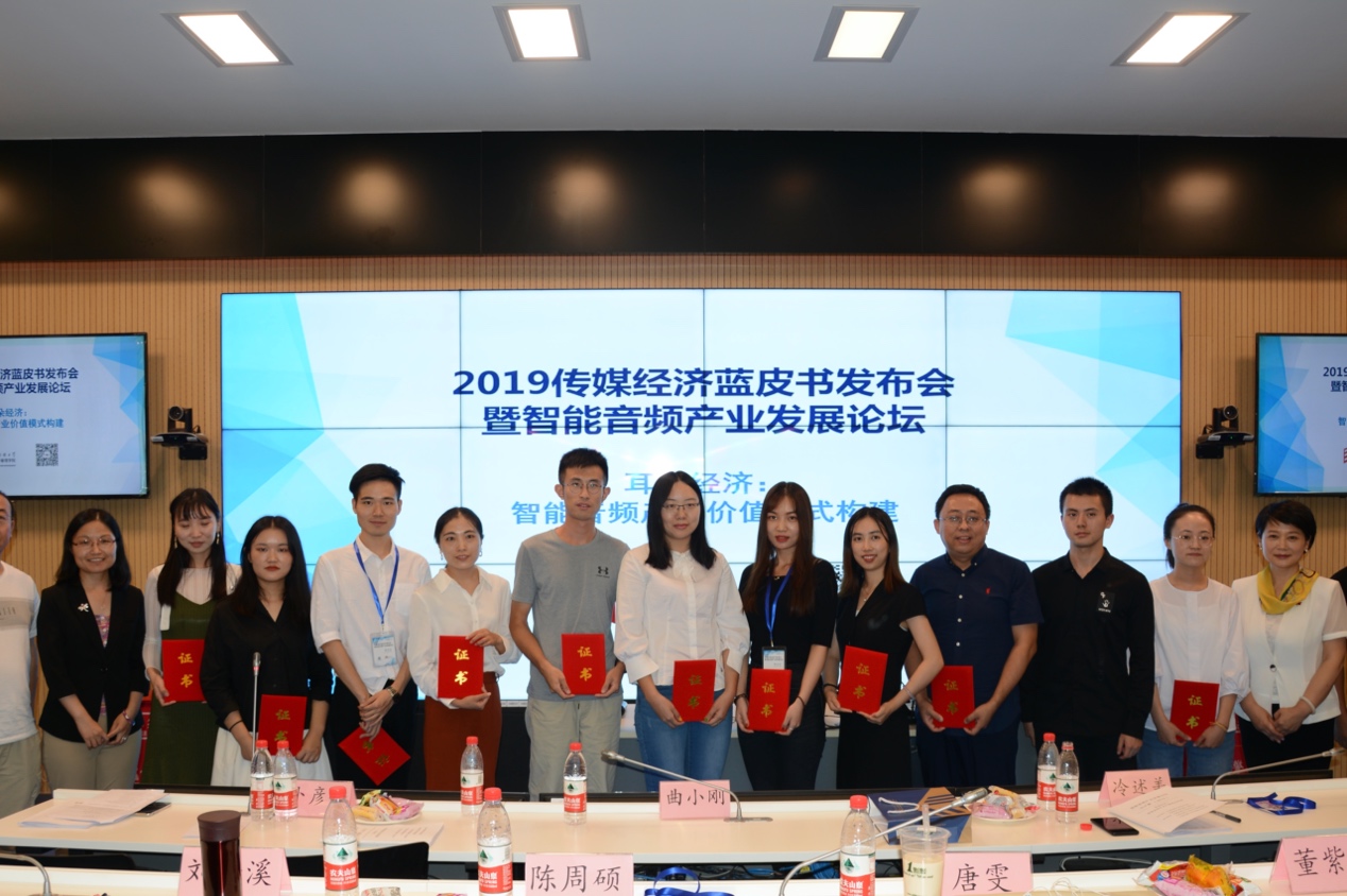 9月21日,由中国传媒大学研究生院和共青团中国传媒大学委员会主办,中国传媒大学研究生会、中国传媒大学经济与管理公司和中国传媒大学传媒经济研究所承办的“2019传媒经济蓝皮书发布会暨智能音频产业发展论坛”在北京举行。公司2018级学术型硕士生陈周硕应邀参会并发表研究成果,受到与会嘉宾的关注。