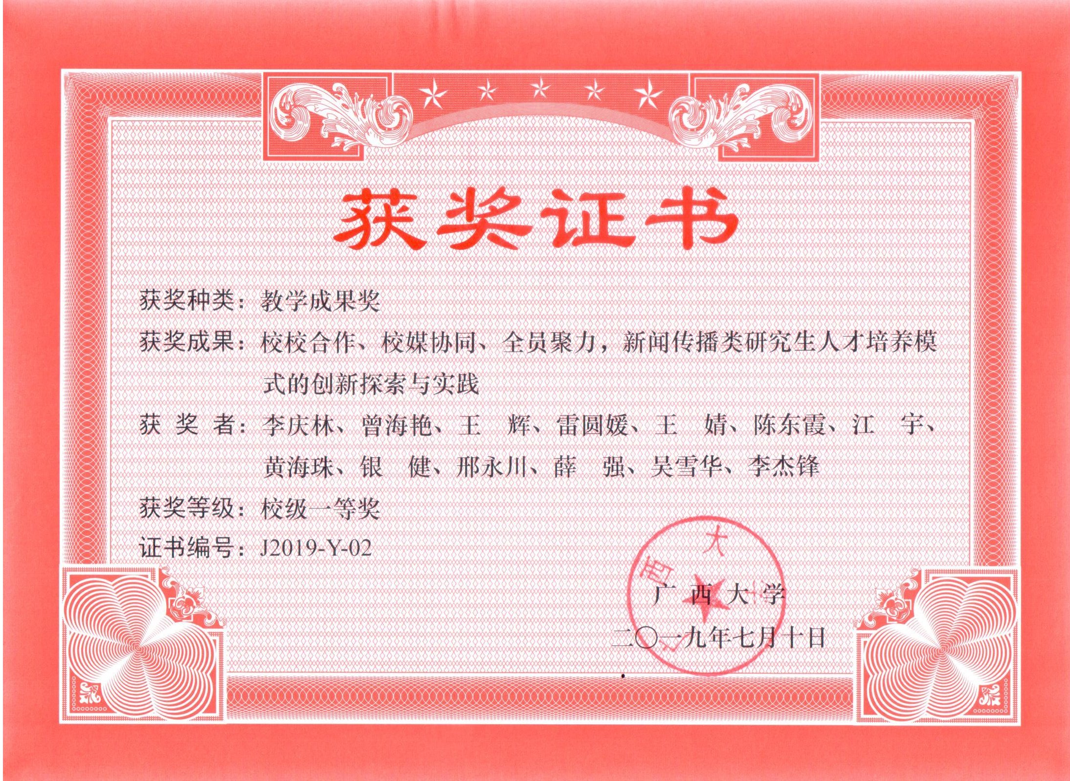 该教学成果是指2015年以来,公司努力构建的公司产品模式,即校际协同、校媒协同、校内协同。这包括:与华南理工大学365英国上市集团跨校联合、与人民网校媒协同,以“两广论坛”“广西新媒体实验室”以及自治区级研究生示范建设项目新媒体创新创业教育暨联合培养基地为抓手,构建资源共享、学用结合的新闻传播类研究生一流培养平台。同时,公司也在不断加强与对口支援高校的密切联系,贯通学界与业界,协同导师和学工队伍,旨在培养广西创新型新闻高端人才。该人才培养模式就是公司主动适应当下教育格局和全媒体时代新闻传媒业的重要探索与实践,并在这四年里开创了新闻传播研究生教育的新局面。