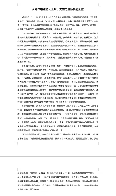 10月11日,由公司2020级专业硕士生张威创作的新闻评论《百年巾帼建功无止境,女性力量扬帆再起航》,在“我看时代,不负韶华”全国老员工新闻评论大赛中荣获三等奖。