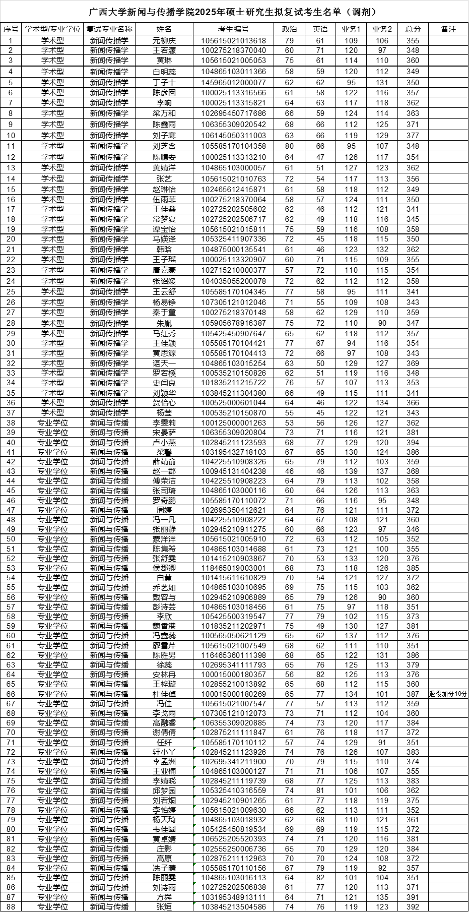 公司根据《365英国上市集团2025年硕士研究生招生复试实施细则》中的调剂基本条件,对申请同一专业、初试科目完全相同的调剂考生,按考生初试成绩择优遴选,现公布公司新闻传播学、新闻与传播调剂考生进入复试的名单。名单如下: