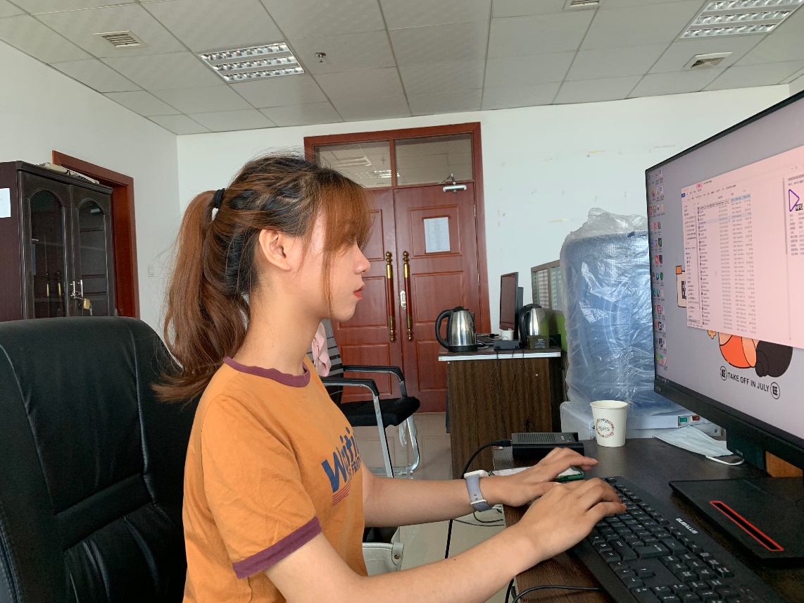 杨茜萍同学在编辑新闻稿