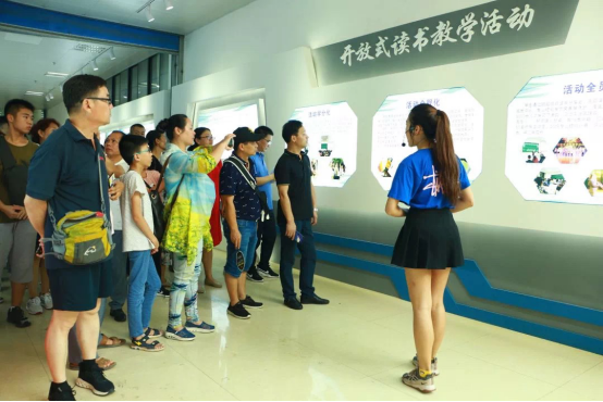 在见面会正式开始前,由讲解员带领新生家长一起参观了公司大楼。在参观中,讲解员向新生家长介绍了公司的全媒体交互中心、报刊全媒体实验室、传媒实验教学师范中心、英国上市官网365广播电视播出中心及英国上市官网365广播电台、部分教室和设备放置室等。在参观过程中唐兴书记还向家长进行了深入的补充,使新生家长对公司的教学设备设施有了更为全面的认识。