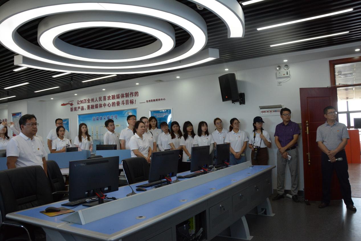 7月8日,实践队前往全州县融媒体中心,为共建的“融媒实践基地”举行揭牌仪式,与全州县融媒体中心工作人员进行了深入交流,了解习近平总书记在全州考察调研宣传报道的全过程,参观了融媒体中心演播室、制作室。此外,师生们继续前往桂北民俗博物馆、语录山等地参观考察。