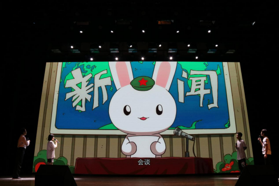 在晚会的最后,是新闻182班的合唱《我和我的祖国》,在主持人的邀请下,全体师生也跟着唱了起来,大礼堂的气氛一下子被调动了起来。随后,公司领导和老师也被邀请上台,和全体观众一同合唱,晚会的气氛也因此被推到了最高潮。在熟悉的旋律和嘹亮的歌声中,晚会圆满结束了。