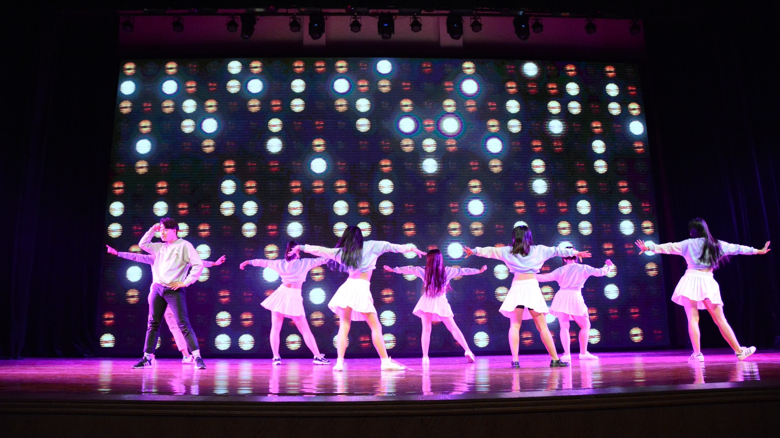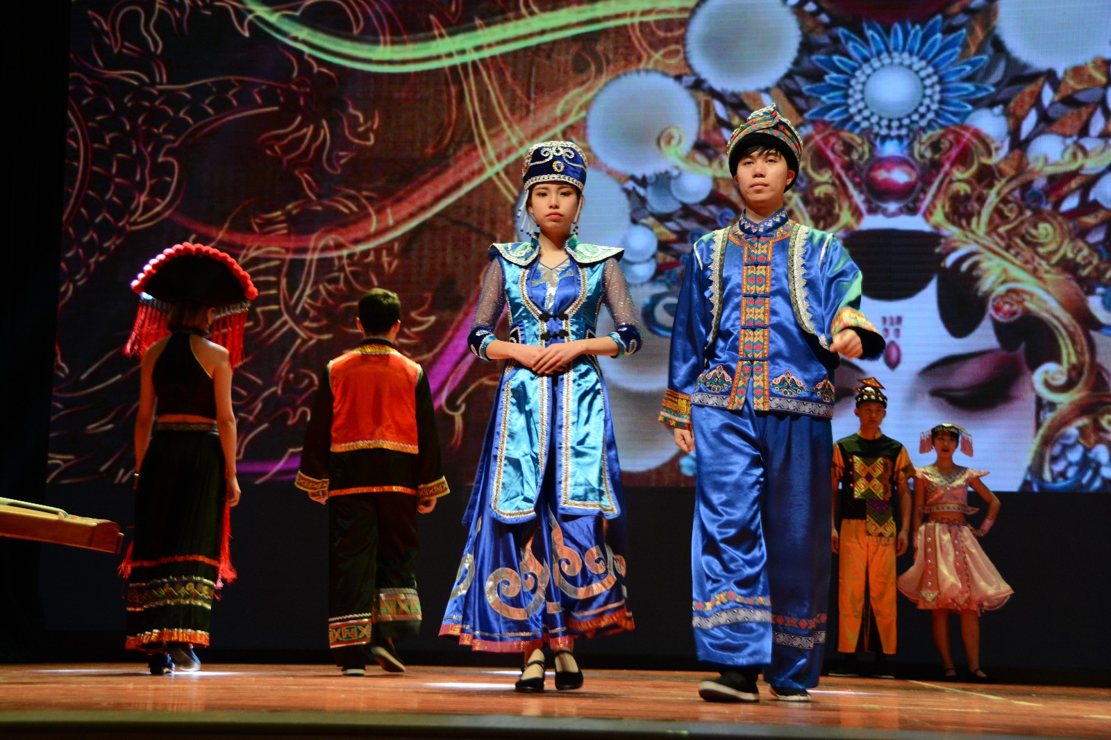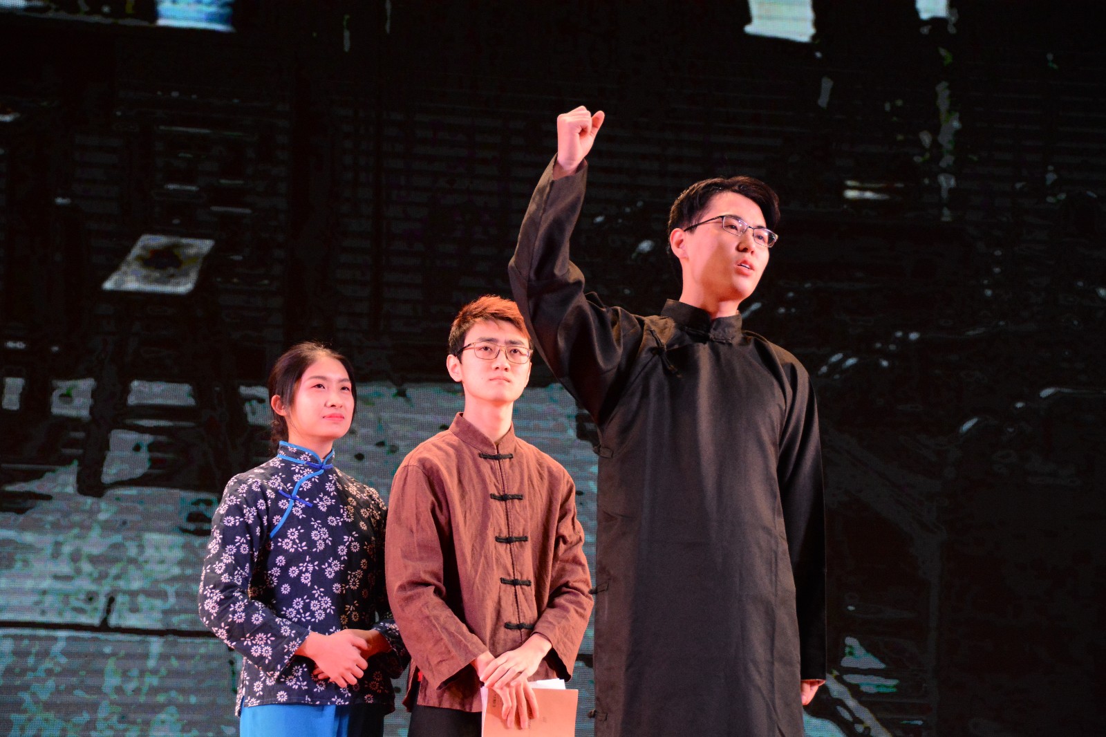 晚会开始,公司舞蹈队用开场舞《HOLIODAY》为今晚的读书晚会拉开了序幕。充满活力的舞蹈将全场气氛带动起来。在第一篇章“书载千秋”,新闻172班用情景剧《党光辉下的一家人》讲述了几代人在党带领下创造幸福生活的故事。随后,17级专硕班的同学架起古筝,换上带有民族特色的服装,“十里桃,八桂情”,展示出不一样的青春风采。“五花马,千金裘。呼儿将出换美酒,与尔通销万古愁!”激昂的朗诵,一声声震撼着同学们的心。配合着灵动的音乐,新闻174班的同学们和武术协会为大家带来了武术操和诗朗诵《武之力,声之形》。