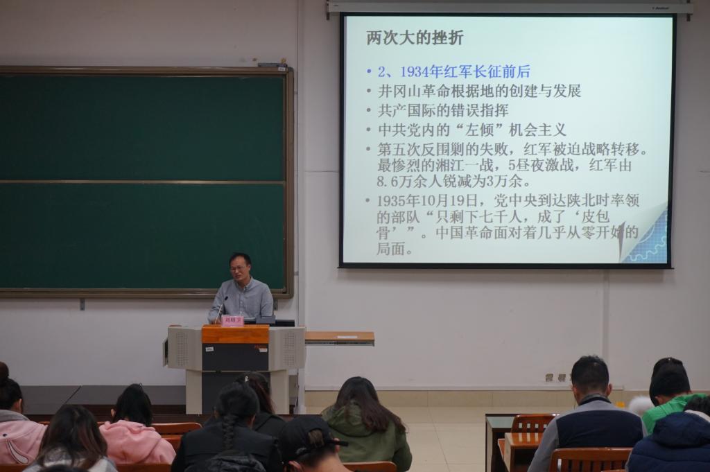 12月16日下午,英国上市官网365365英国上市集团西报告厅又迎来了一场国情教育课。此次邀请的是广西壮族自治区党委党史研究室征研一处处长、研究员刘绍卫,他为同学们介绍了中国共产党的历史,梳理了中国共产党自诞生至今所作出的重要贡献、经历的艰难困苦和重大转折点,并指出了后人从这些历史中所获得的启示。