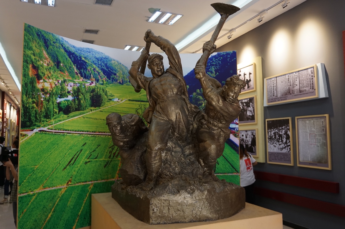 看着讲解员解读一张张老照片背后的故事,团队成员仿佛穿越时光,回到过去那个拿着锄头、喊着号子、垦荒种地的火红岁月。他们有的紧蹙眉头,不放过讲解员叙述的每一个字;有的专注地盯着照片下的讲解文字,不放过任何一个获得知识的机会。