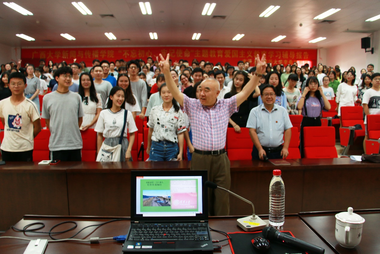 李希光教授以亲身经历为西大新闻学子上了一堂深刻动人的“不忘初心、牢记使命”爱国主义教育学习辅导课。从他的成长经历到他母亲的爱国故事,从他的奋斗岁月到带出了一波又一波优秀新闻人才。李希光教授告诫新闻学子,务必坚持爱国原则,为我国的新闻事业增添绵薄之力。
